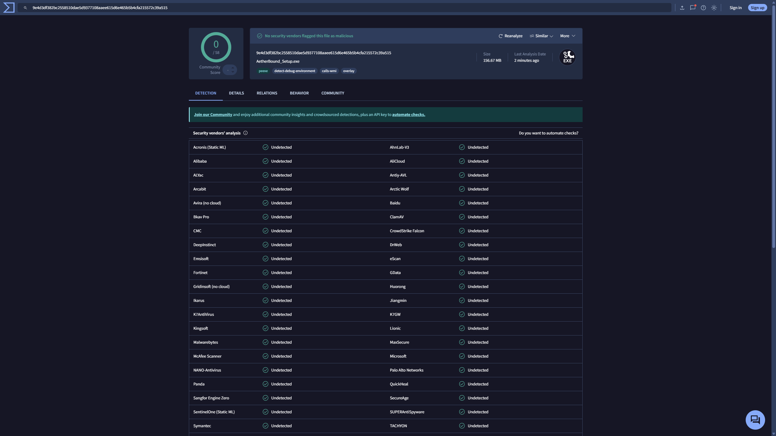 - If you do download the file, run it through VirusTotal and Hybrid Analysis before doing anything else. As I showed above, a green light from just one isn't enough. If either one shows red flags, refuse to run it. If the person says it's a false positive, tell them to fix it and send it to you again.